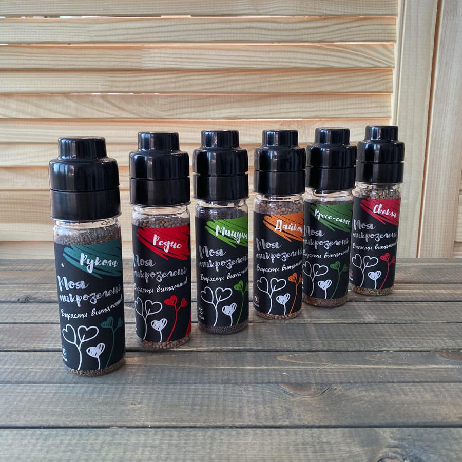 В набор входят семена: рукола, редис, мицуна, кресс-салат, брюква, МИКС.Состав: Семена 75 г -6 шт, бутыль - 6 шт